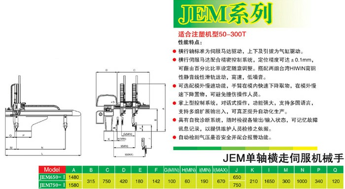 名称:机械手 说明: 在现今的生活上,科技日新月益的进展之下,机械人手臂与有人类的手臂区别就在于灵活度与耐力度。也就是机械手的优势可以重复的做同一动作在机械正常情况下也不会觉得累!机械手臂的应用也将会越来越广泛,机械手是近几十年发展起来的一种高科技自动生产设备,作业的准确性和环境中完成作业的能力。工业机械手机器人的一个重要分支。机械手按驱动方式可分为液压式、气动式、电动式、机械式。特点是可以通过编程来完成各种预期的作业,机械手构造和性能上兼有人和机械手机器各自的优点。 上一页:JEM机械手 下一页:JEM三轴机械手 [返回]