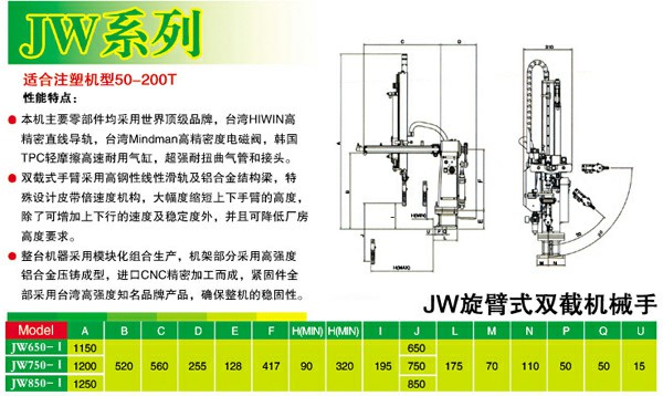 名称:JW斜臂式双截机械手 说明: JW斜臂式双截机械手的冲压是的生产方法,采用复合模,尤其是多工位级进模,JW斜臂式双截机械手可在一台压力机(单工位或多工位的)上完成多道冲压工序,实现由带料开卷、矫平、冲裁到成形、精整的全自动生产。生产效率高,劳动条件好,生产成本低,一般每分钟可生产数百件。JW斜臂式双截机械手冲压自动化的冲压加工的生产效率高,且操作方便,易于实现机械化与自动化。JW斜臂式双截机械手这是因为冲压是依靠冲模和冲压设备来完成加工,JW斜臂式双截机械手普通压力机的行程次数为每分钟可达几十次,高速压力要每分钟可达数百次甚至千次以上,而且每次冲压行程就可能得到一个冲件。 上一页:注塑机专用机械手 下一页:JT斜臂式机械手 [返回]